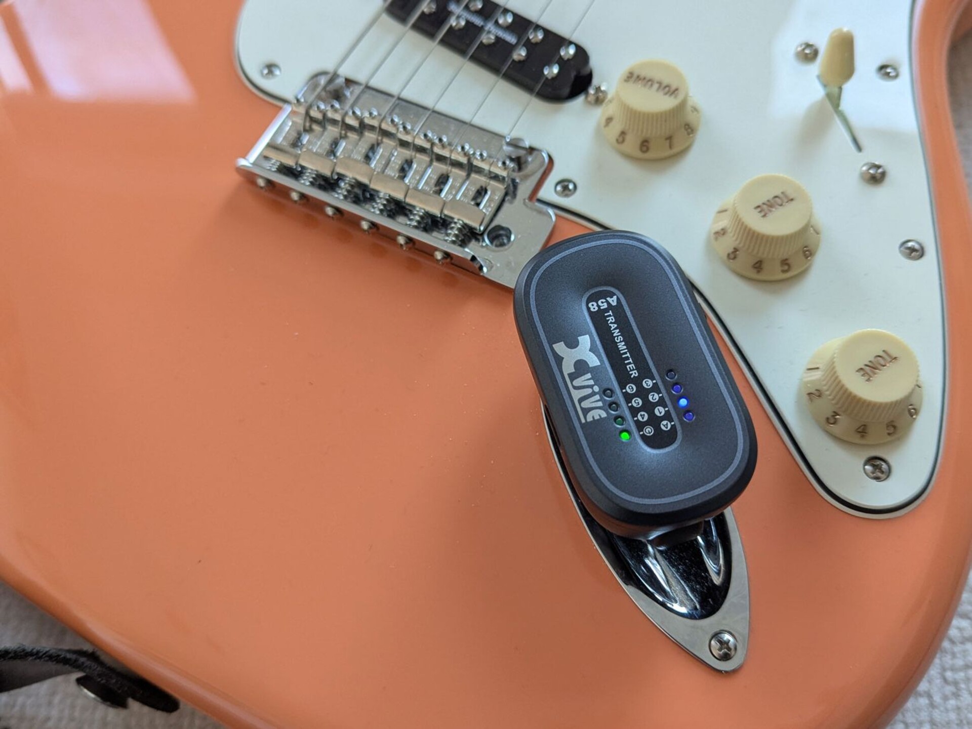 Per chitarra elettrica, acustica e basso - Trasmissione in banda 5.8Ghz - Conversione 24-bit/48 kHz con 110Db di dinamica - Risposta in frequenza 20Hz-20Khz - 6 canali selezionabili - Latenza inferiore a 5 ms - Range di 30m (in assenza di ostacoli) - Jack snodati con escursione di 300° - Fino a 5 ore di funzionamento con una singola carica - Batteria al Litio integrata (sostituibile) - doppio cavo USB per ricarica incluso